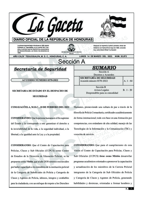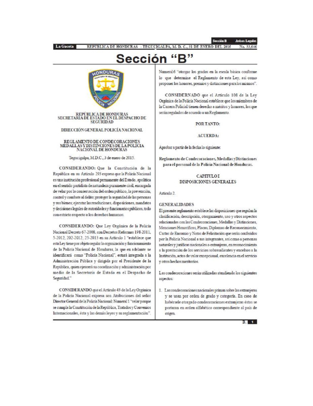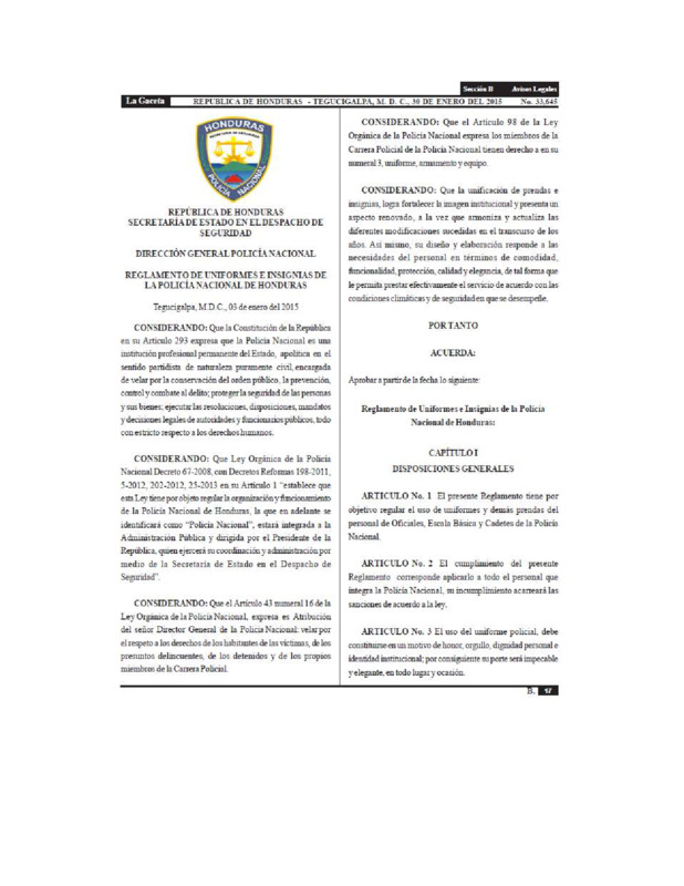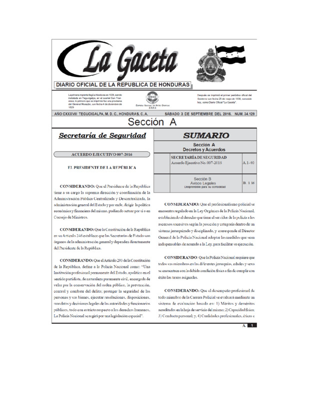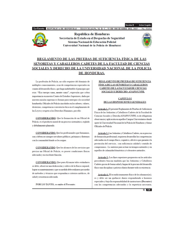 Reglamento de evaluación física personal de la Policía Nacional de Honduras. Acuerdo ejecutivo 007-2016